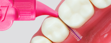 Πιέζουμε ελαφρά για να τοποθετήσουμε το μεσοδόντιο βουρτσάκι στο διάστημα μεταξύ των δοντιών.